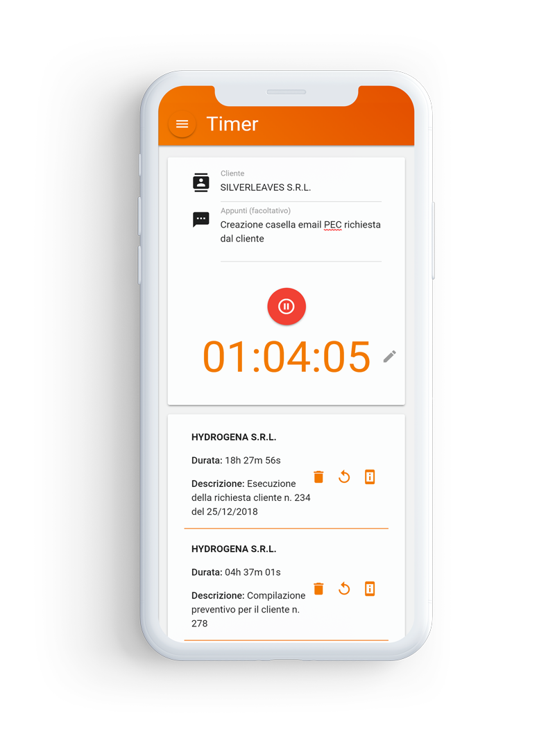 Attraverso ad un timer con precisione al secondo potrai far pagare al cliente l'effettivo tempo di lavoro del tuo tecnico.